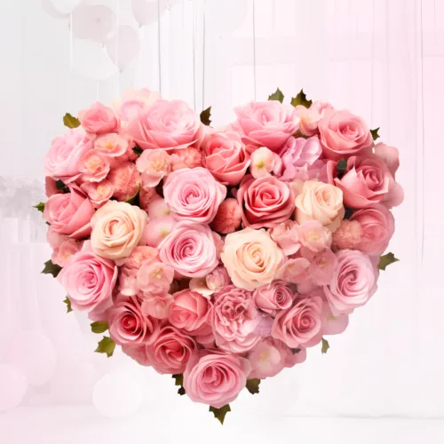 • Средний - роза - 9 шт., гипсофила, упаковка, лента