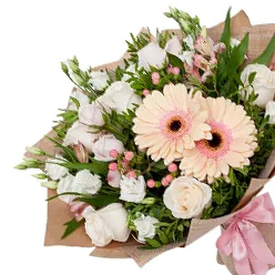 Букет из кремовых роз и альстромерии Карамелька