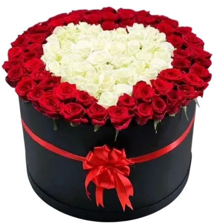 Шляпная коробка с белыми и красными розами — это идеальный подарок для любого торжества!