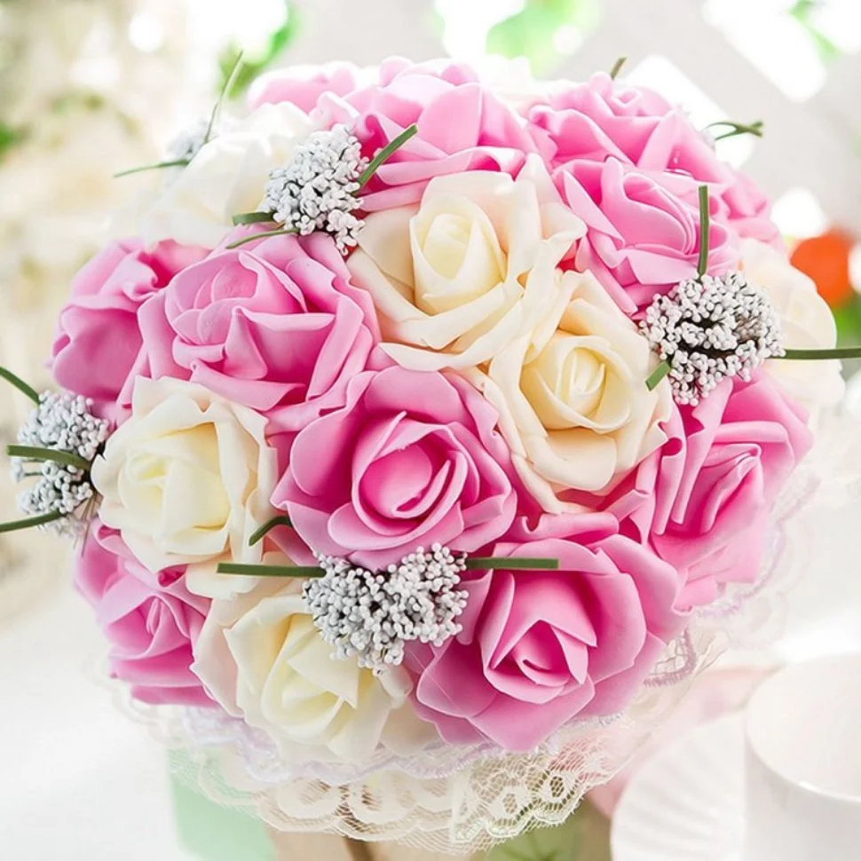 Букет невесты из белых и розовых роз № 11
