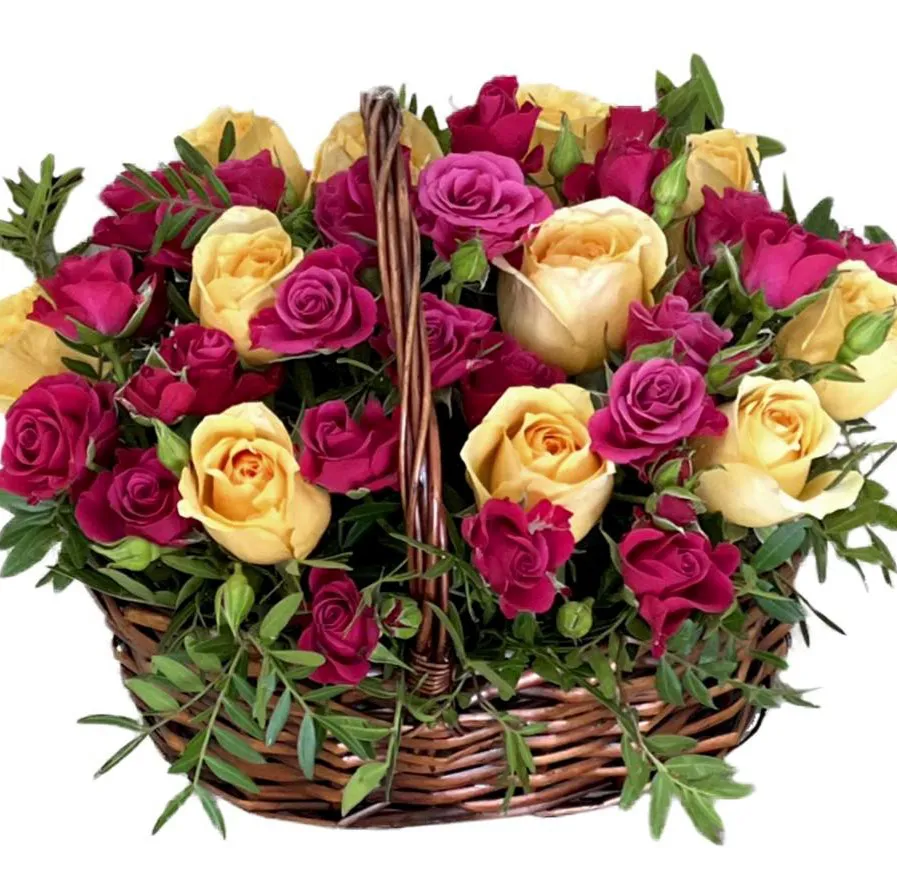 Корзина с розами — это великолепное произведение искусства, наполненное красотой и ароматом нежных цветков. Каждая роза, будь то классическая красная, элегантная белая или ярко-розовая, символизирует любовь, страсть и нежность.