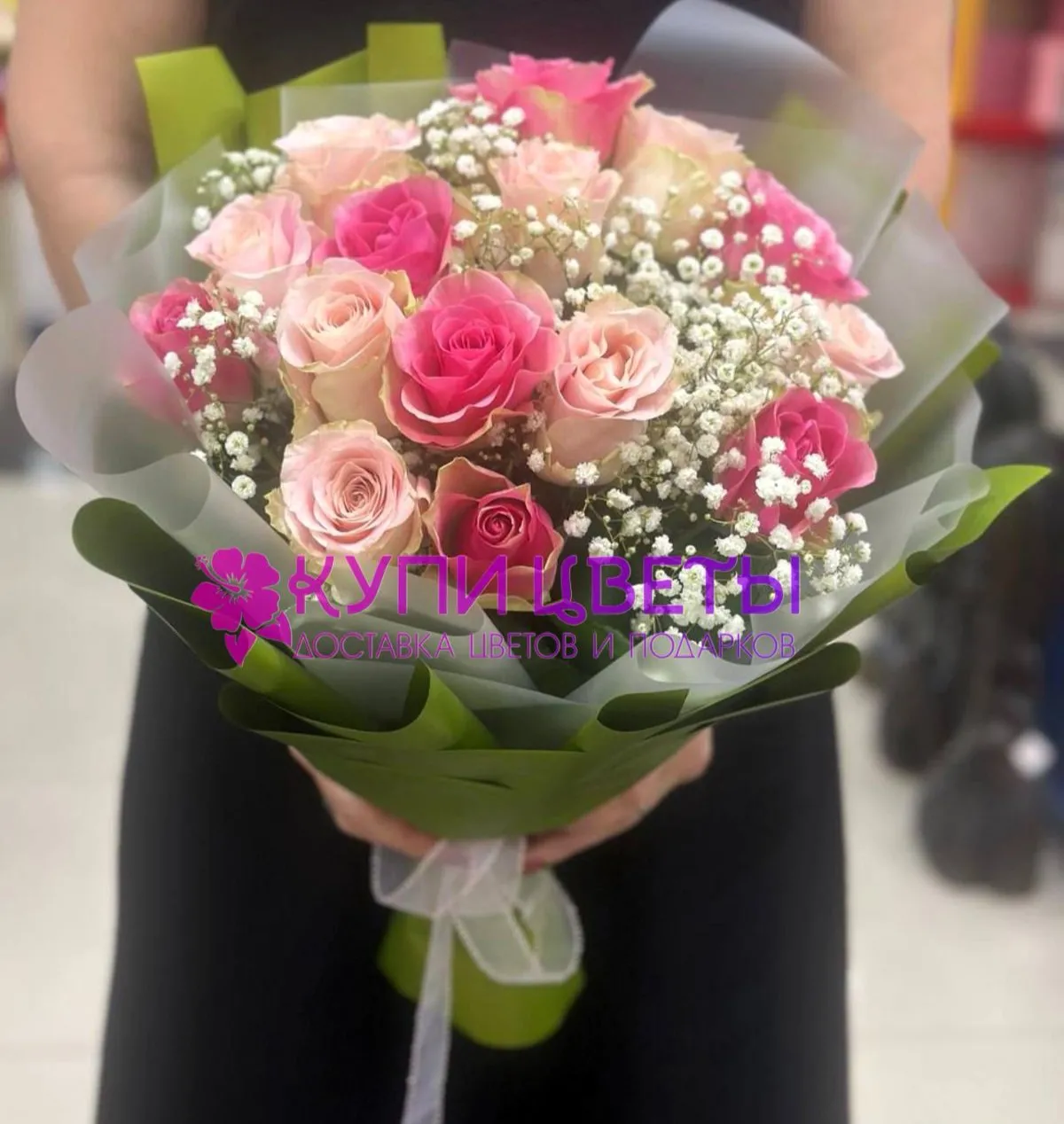 Этот изысканный букет создан для тех, кто ценит нежность, красоту и искренние чувства. Розовые розы, символ любви и нежности, гармонично сочетаются с воздушной гипсофилой, добавляя композиции легкости и утонченности. Подарите этот прекрасный букет как признание в любви, символ благодарности или просто чтобы сделать особенный день еще более волшебным. Это идеальный подарок для вашей любимой, жены, девушки или мамы.
