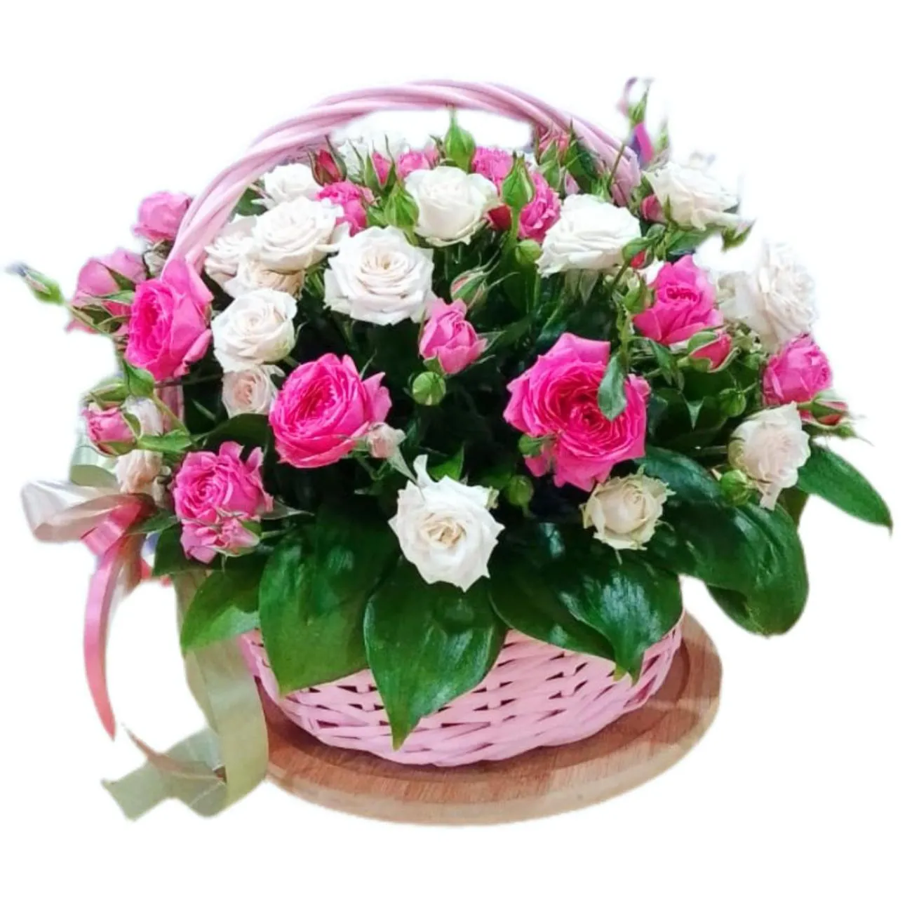 Вариант—Стандарт (кустовая роза - 11 шт., зелень, оазис, корзина)