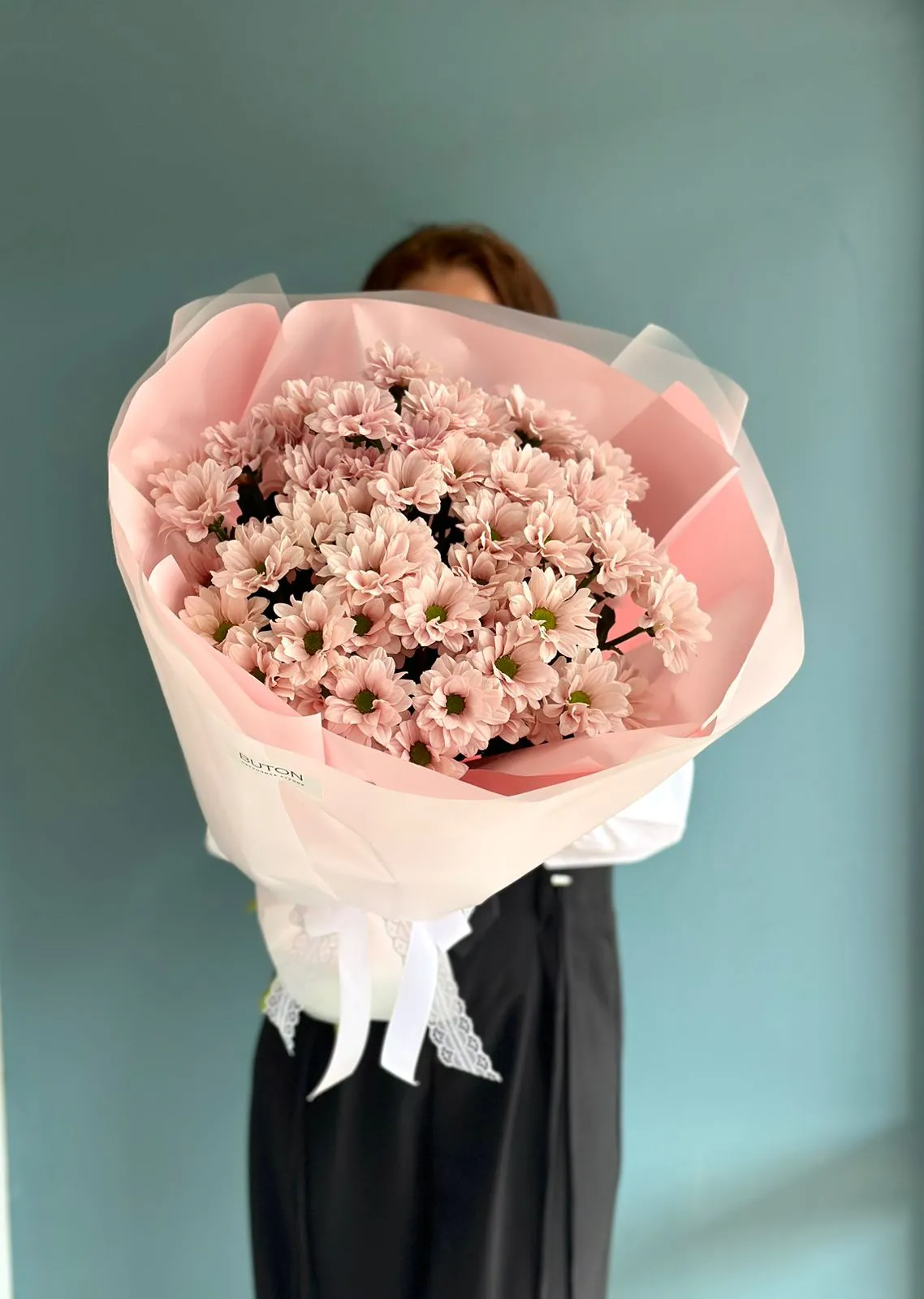 Ромашковая хризантема, упаковка, лента