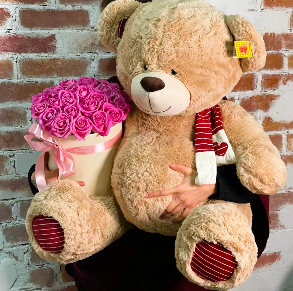 Наша шляпная коробка с розовыми розами и мягкой игрушкой — это не просто подарок, это настоящее произведение искусства, которое способно передать все ваши эмоции и сделать любой день особенным. Закажите сейчас и подарите радость, которую невозможно забыть!