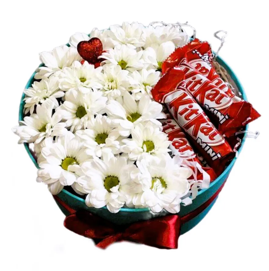Не упустите возможность порадовать любимых, выбрав шляпную коробку с шоколадками и ромашками — это отличный способ выразить свои чувства и сделать день особенным!  Шляпная коробка с шоколадками и ромашками — это идеальный подарочный набор, который объединяет в себе сладость и нежность. Каждая коробка, оформленная с любовью, наполнена разнообразными шоколадными угощениями, которые подарят наслаждение каждому сладкоежке. А свежие ромашки, аккуратно уложенные среди шоколадок, добавляют боксам особый шарм и утончённость.